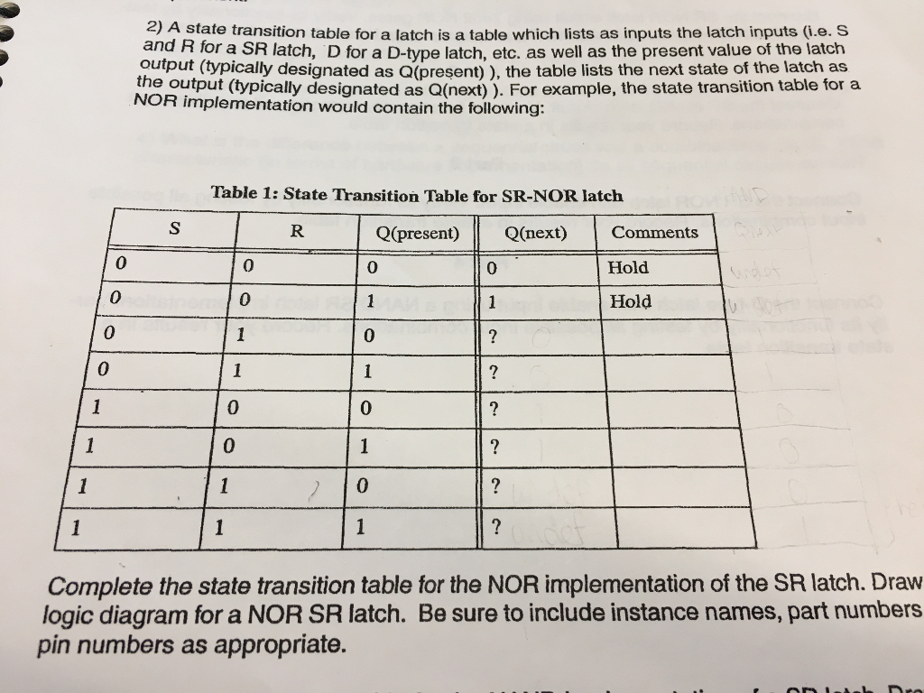 Solved 2 A State Transition Table For A Latch Is A Table Chegg Com