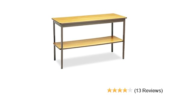 Amazon Com Barricks Utility Table With Bottom Storage Shelf Rectangle 48w X 18d X 30h Oak Home Kitchen
