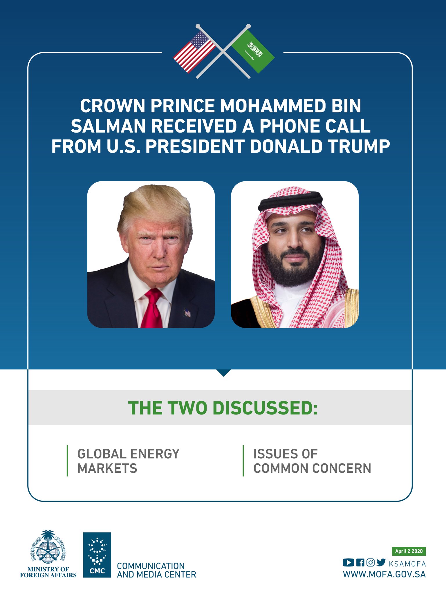 Foreign Ministry On Twitter Crownprince Mohammed Bin Salman S Phone Call With Potus